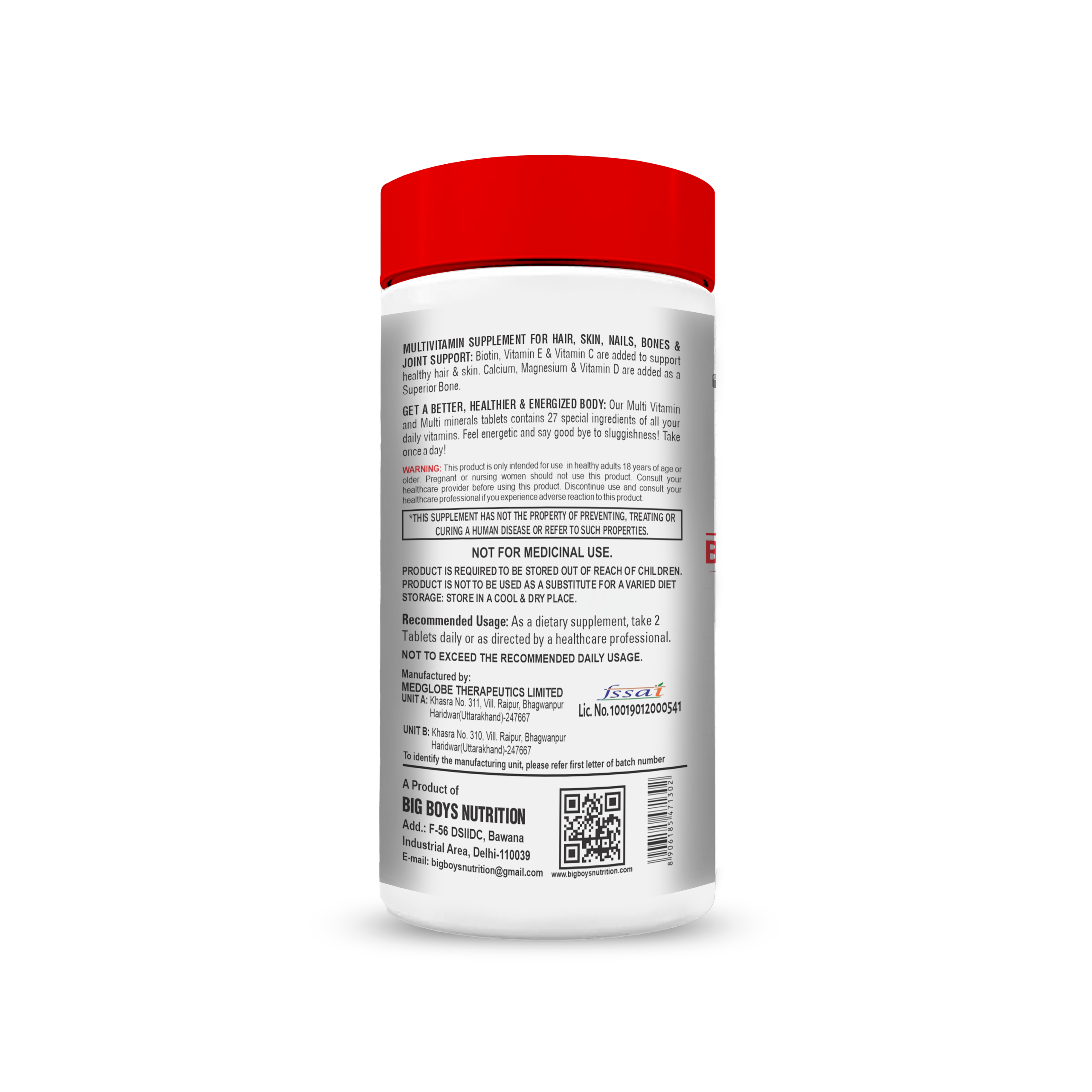 Big Boys Nutrition Multivitamins is a complete daily multivitamin formula designed to support an active lifestyle, overall wellness, and daily nutritional balance. Formulated for gym-goers, athletes, and active individuals, this supplement helps bridge nutritional gaps and maintain consistent energy throughout the day.