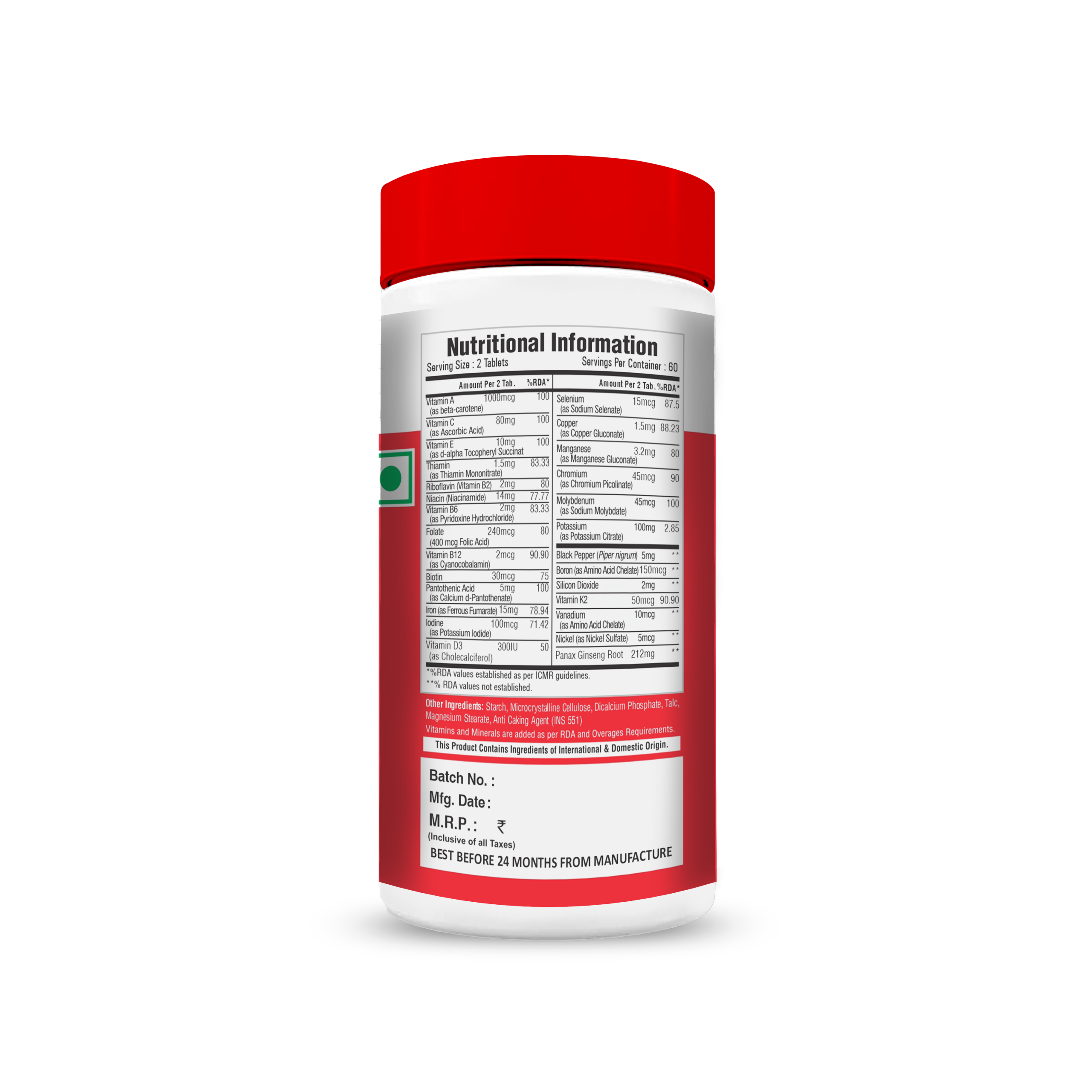Enriched with essential vitamins and minerals, along with Ginseng, this advanced formula supports stamina, strength, immunity, and energy levels. Vitamins such as Vitamin A and Vitamin D3 contribute to immune function, bone health, and overall vitality, helping you stay active and focused.
